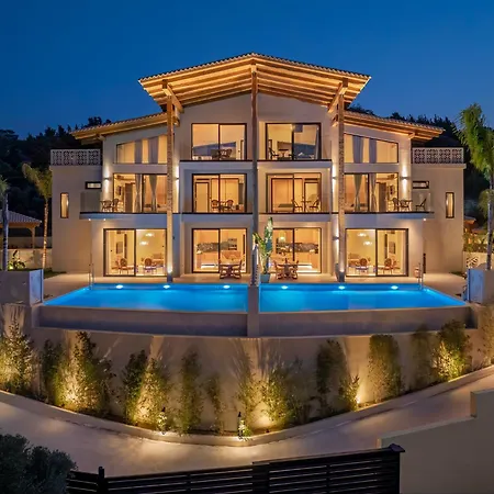 La Olympus Luxury Villa Rhodes incluye un cuarto de baño con una ducha a ras de suelo y un inodoro separado. Las comodidades de los cuartos de baño incluyen secador de pelo, albornoces y toallas de baño.